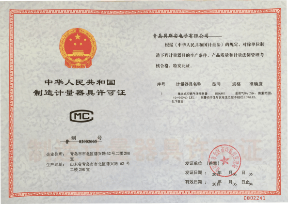 我公司是青島市具有國家質(zhì)量技術監(jiān)督部門頒發(fā)的計量器具生產(chǎn)許可證的生產(chǎn)企業(yè);獲得國家防爆電氣產(chǎn)品質(zhì)量監(jiān)督檢驗中心頒發(fā)的防爆合格證;獲得國家公安部消防產(chǎn)品合格評定中心頒發(fā)的消防產(chǎn)品形式認可證書。